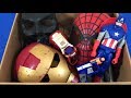 Box of Toys Super Heroes Spiderman Captain America Nerf Gun - YouTube |